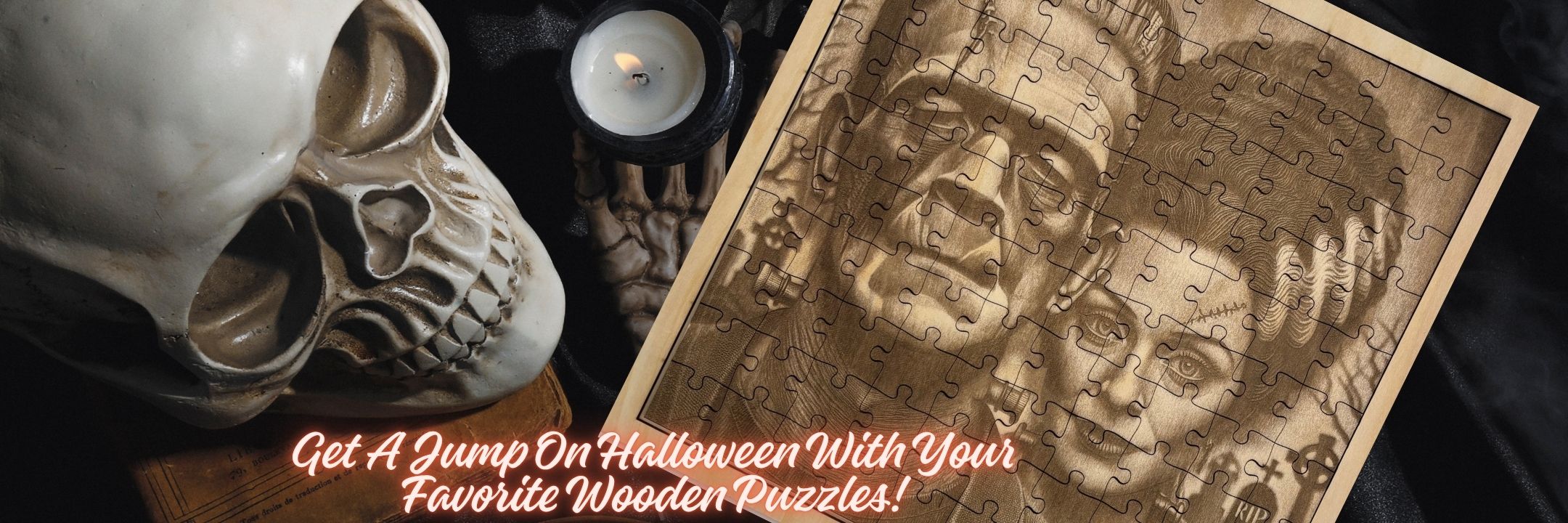 Mr And Mrs Frankenstein, 11"x 11" 100 Piece Wooden Engraved Jigsaw Puzzle