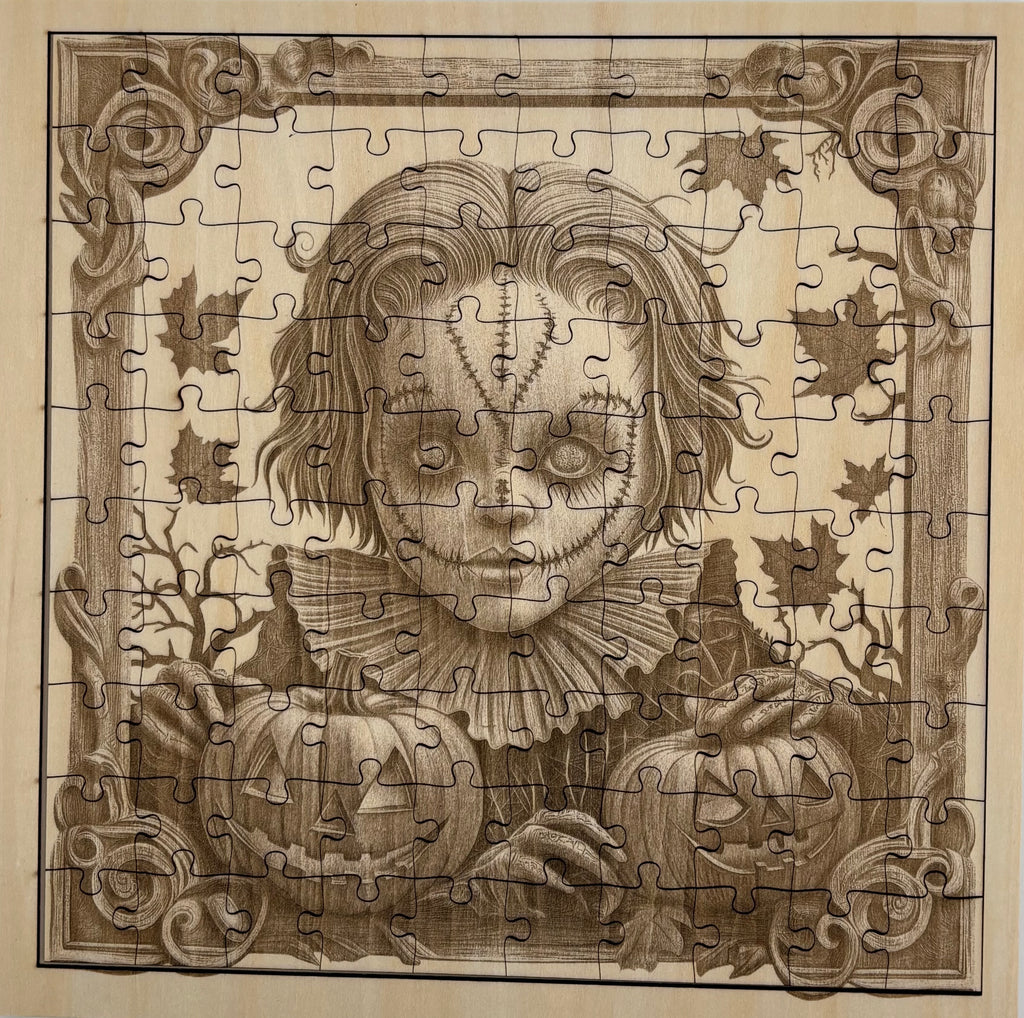 Discover the intricate craftsmanship of the Just A Jester wooden jigsaw puzzle. Measuring 11" x 11" and featuring 100 precisely laser-engraved pieces, this puzzle offers a satisfying challenge for enthusiasts. Its durable wooden construction ensures longevity and a premium tactile experience, making it ideal for both display and repeated assembly. Perfect for those who appreciate detailed artistry and quality materials in their puzzle collection.
