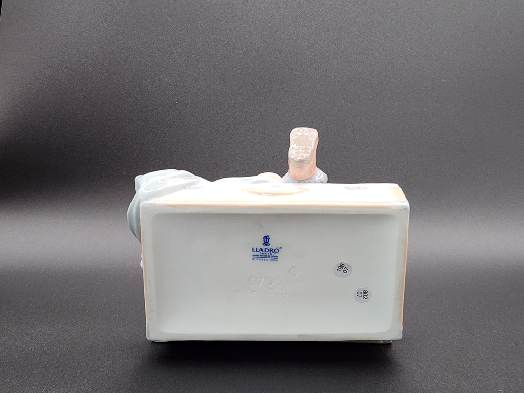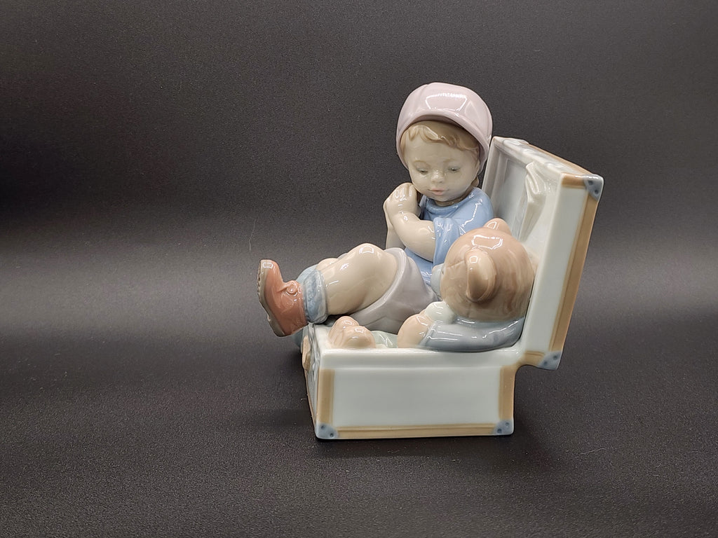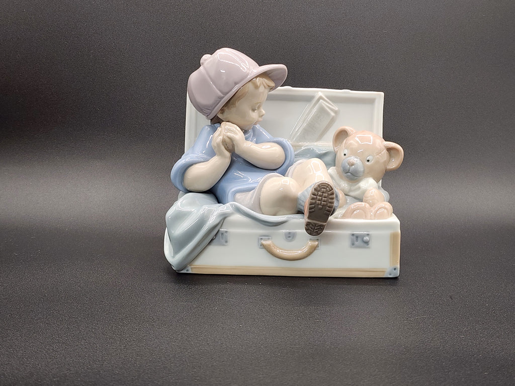 Discover the heartwarming charm of Lladro's "My Favorite Place" figurine (#6795). This endearing porcelain sculpture depicts a young boy sitting in a vintage trunk with his favorite Teddy Bear, radiating innocence and a sense of secret adventure. 1 A touching piece that captures a cherished childhood moment, perfect for Lladro enthusiasts and those who appreciate fine craftsmanship.